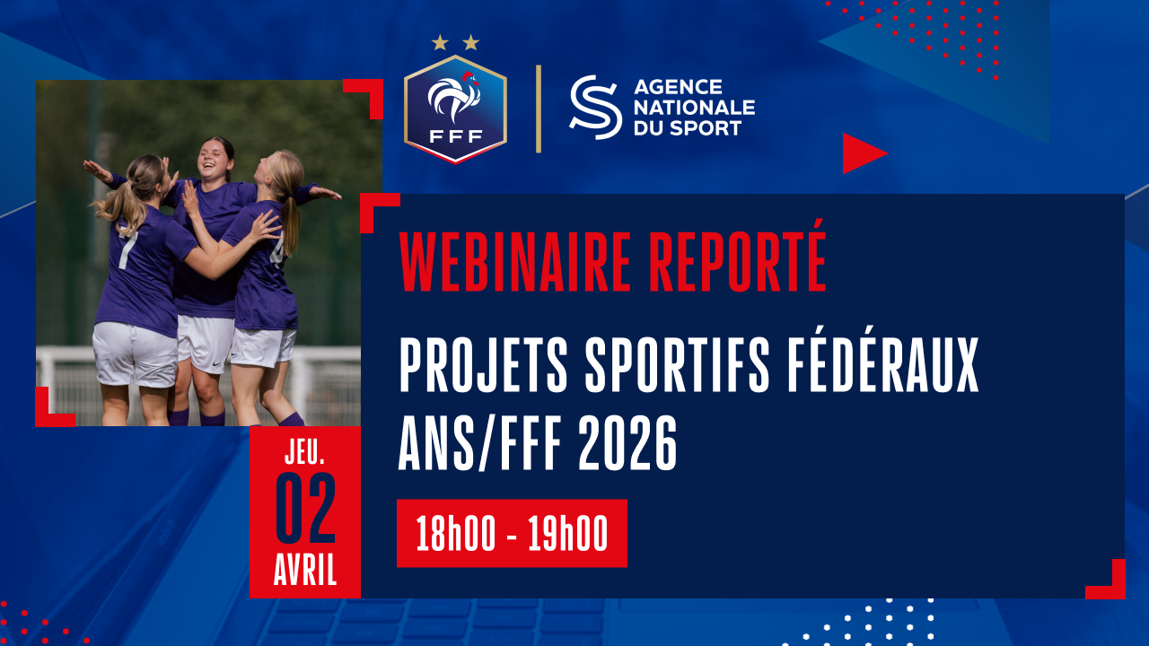Webinaire PSF 2026 reporté au 2 avril : réinscription obligatoire Initialement prévu le 19/03, le webinaire de la FFF pour présenter la campagne clubs des Projets Sportifs Fédéraux se tiendra le...