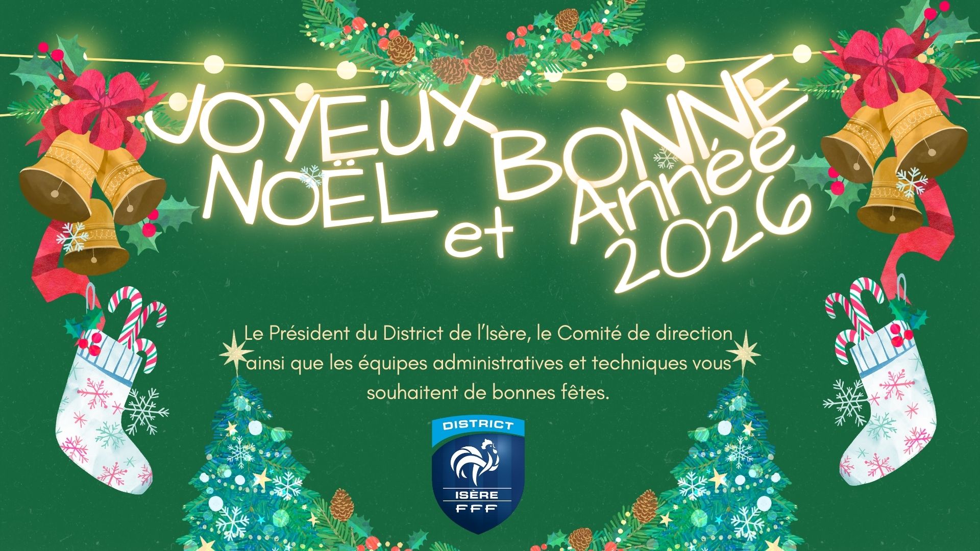Hervé Giroud-Garampon Président du District, Le Comité de Direction, Les membres de commissions, l'ensemble du personnel administratif et technique, Vous souhaitent un joyeux Noël et d'excellentes fêtes de fin d'année...