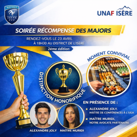 Cette soirée mettra à l’honneur les arbitres qui se sont distingués tout au long de la saison, ainsi que celles et ceux qui contribuent activement au développement de l’arbitrage au sein du District de l’Isère de Football.